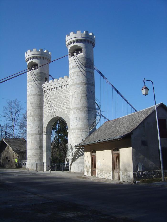 Photographie en couleur représentant l'ancien poste de douane française à Allonzier-la-Caille. En arrière plan, le pont Charles-Albert.