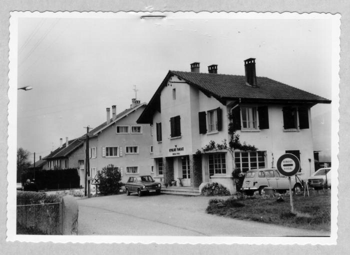 Photographie en noir et blanc du bureau de douane de Moniaz, à proximité de Saint-Cergues