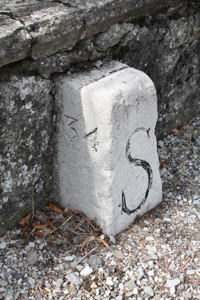 Photographie en couleur de la borne franco-suisse à hauteur de la douane de Moniaz, à proximité de Saint-Cergues.