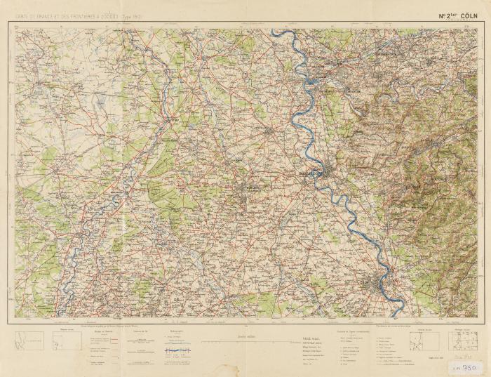 Carte de France et des frontières, type 1912. Köln (Cologne), n°2ter/ Dressé, gravé et publié par le Service Géographique de l'Armée. - 1925 - 1/200.000e.