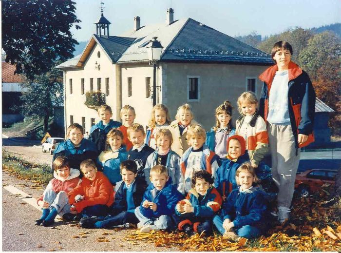 Photographie, en couleurs, représentant la classe de 1988-89 à Bogève.