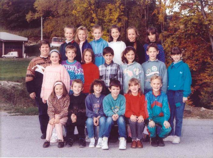 Photographie, en couleurs, représentant la classe de 1993-94 à Bogève.