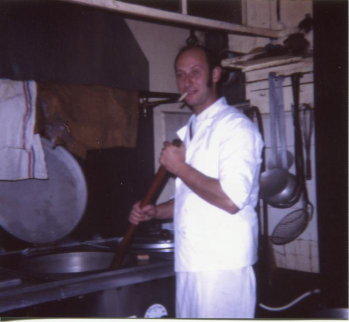 Photographie carrée en couleur de Emile BOUVIER dans une cuisine à Paris en novembre 1970.