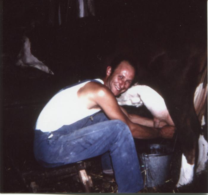 Emile BOUVIER trait une vache