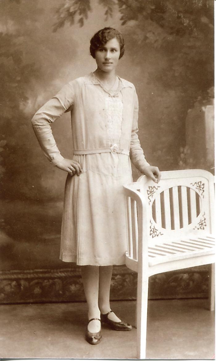 Portrait en noir et blanc, en pied, de Madeleine GOY, née "Clément" FOREL (1909-2002).
