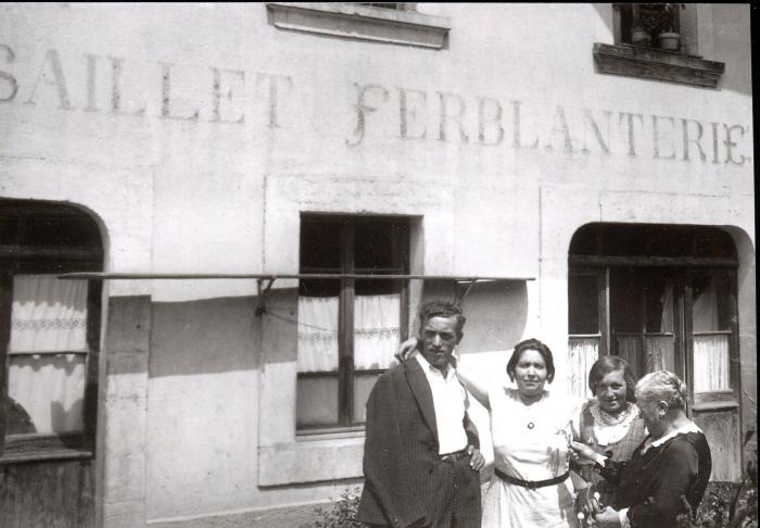 Photographie de trois femmes et un homme devant la ferblanterie SAILLET.
