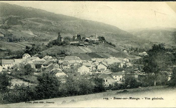 Carte postale en noir et blanc représentant une vue générale de Bonne.