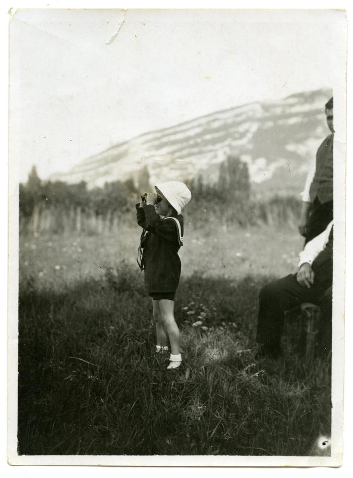 Fonds Cheneval-Bonnefoy ➔ Albert Fouilloux observe avec des jumelles (?)