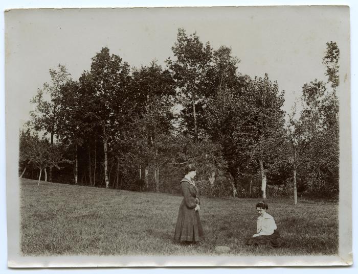 Photographie de deux jeunes femmes dans un parc, sans doute Chez Bosson à Fillinges.