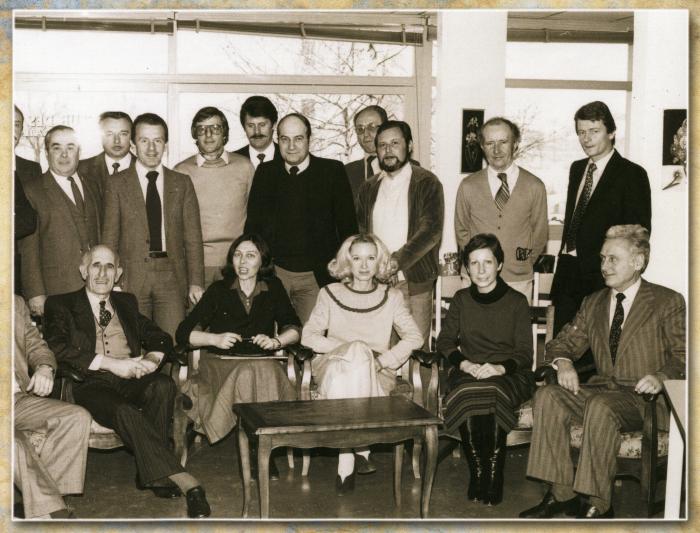 Photographie en noir et blanc représentant l'équipe municipale de 1979. Le Maire est Mme Renée MAGNIN, deuxième en partant de la gauche sur le premier rang. à sa droite, Mme Josiane CHEVALLIER, à sa droite, Auguste PATERLINI.