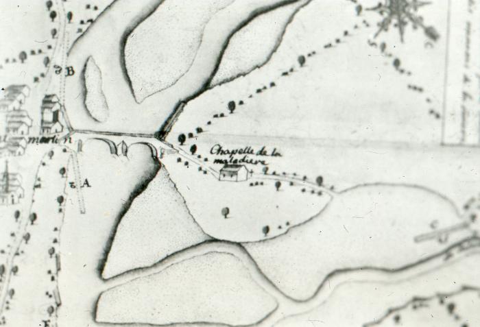 Sallanches: plan avec l'ancien pont de Saint-Martin et la chapelle de la Maladière