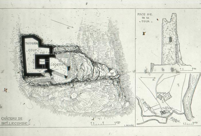 Bellecombe: plan du château et élévation de la tour. BLONDEL
