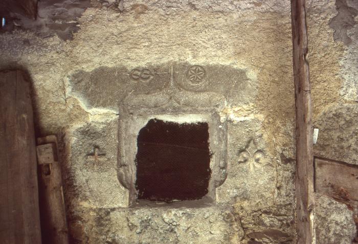 Détail de la fenêtre gothique d'un grenier de la Frasse, à Nancy-sur-Cluses