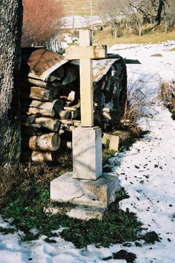 Habère-lullin. Il s'agit d'une croix en bois de forme assez simple, sur un socle