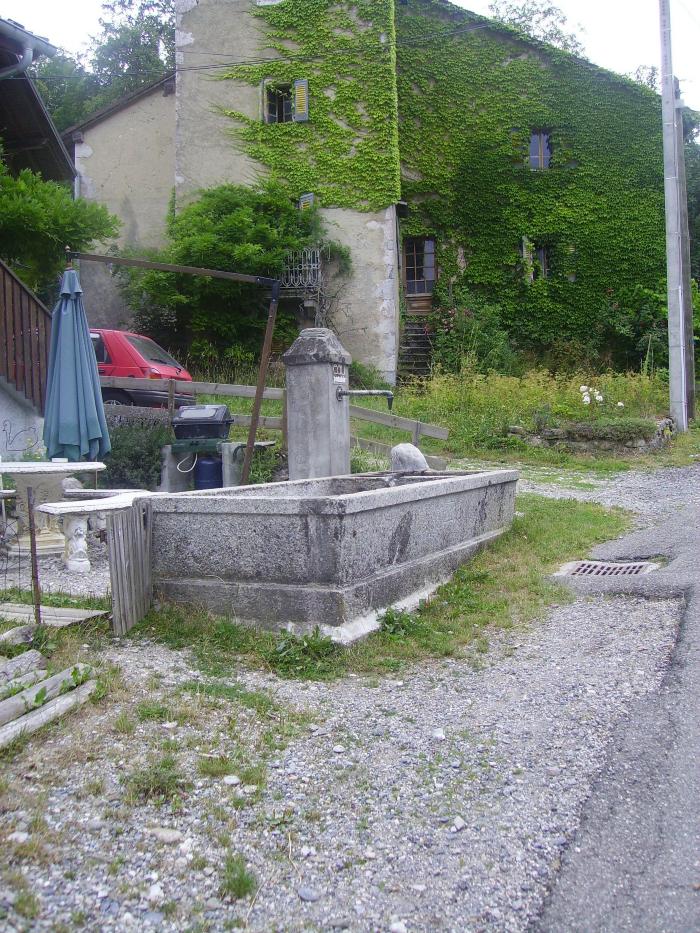 Photographie en couleurs représentant un bassin en pierre sur la commune d'Habère-lullin. Il s'agit d'un bassin près d'une maison du village.