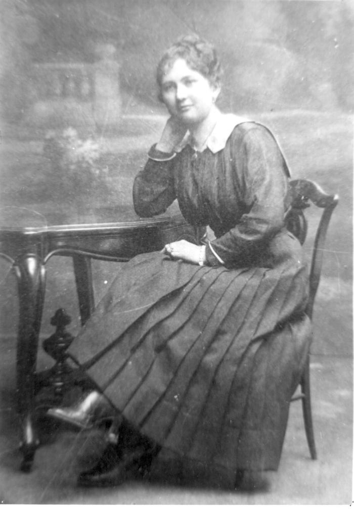 Photographie de Fernande BAUD (soeur d'Alberte BAUD). Chef lieu à Habère-Poche. Travail de documentation réalisé par le Gaer, groupe d'action pour l'environnement rural, la qualité de vie, l'animation à Habère-Poche.