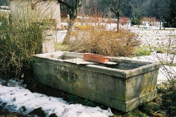 à Habère-poche. Il s'agit d'un bassin en béton, à côté d'une maison ancienne