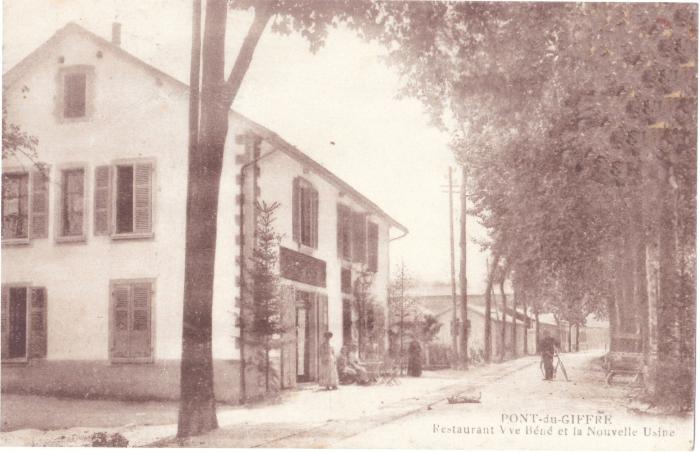 Le cliché est légendé « PONT - du - GIFFRE, Restaurant Vve Béné et la Nouvelle Usine.