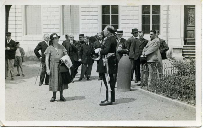 Photographie de madame VIEUX à Saint-Julien-en-Genevois. Cette photographie a été prise le jour où elle a reçu une médaille pour avoir eu 11 enfants dont Louis VIEUX