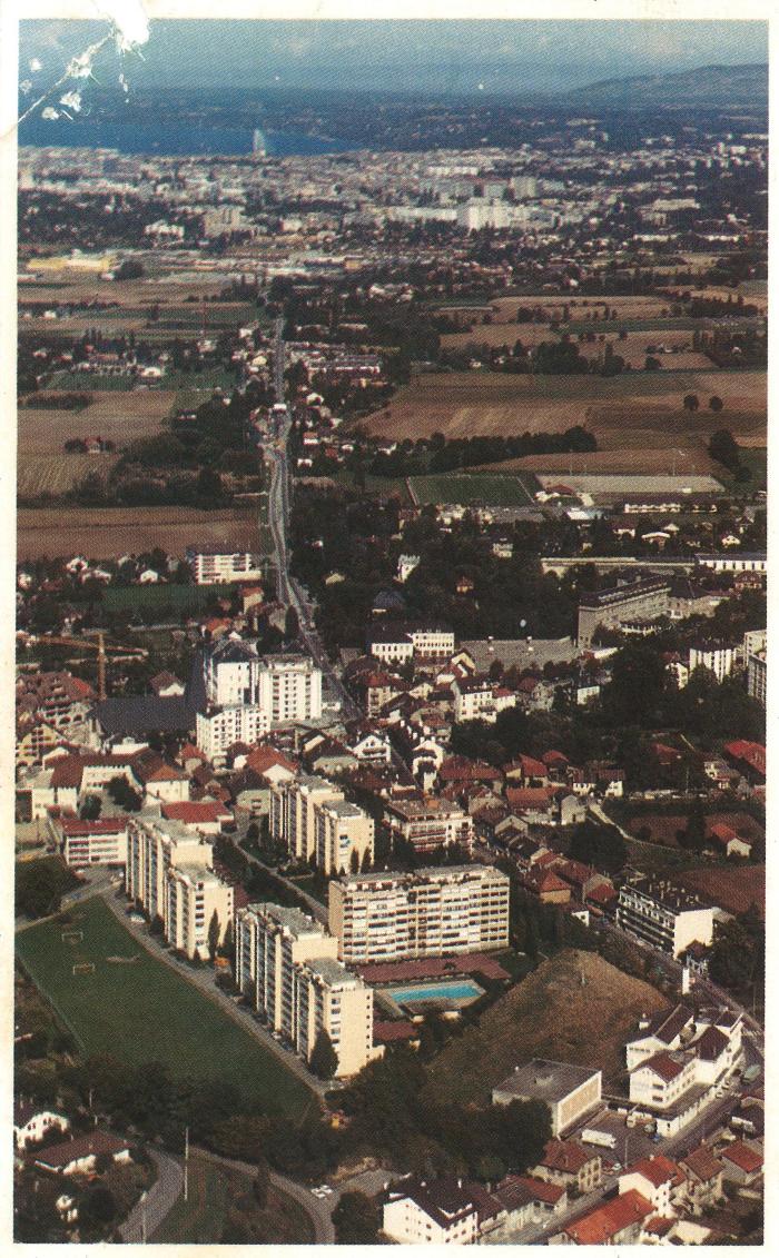 Carte postale en couleur représentant un quartier de logements populaires à Saint-Julien-en-Genevois