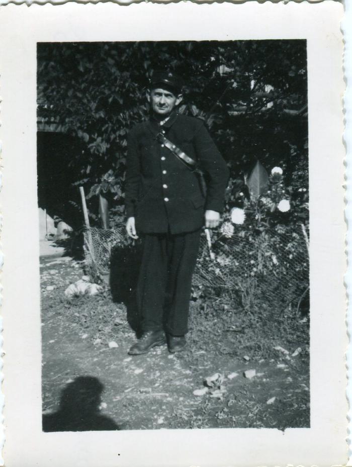 Photographie noir et blanc du facteur de Saint-André-de-Boëge, en 1952.