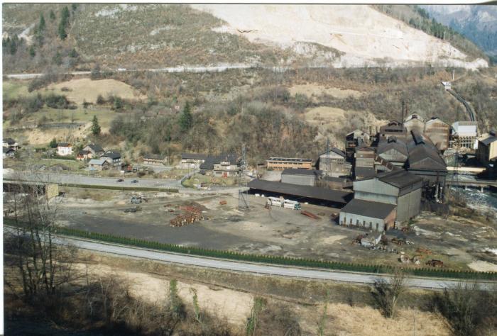 Photographie en couleur de l'usine du Giffre peu de temps prise avant sa démolition en 1994.