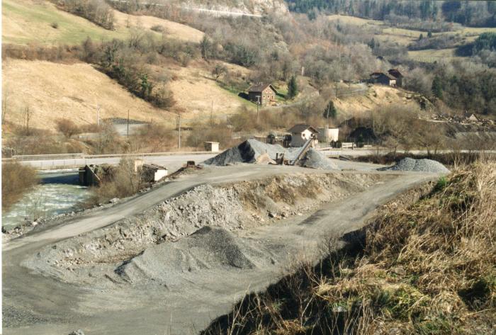 Photographie en couleur représentant les remblais de la démolition de l'usine du Giffre. Le cliché date de 1994.