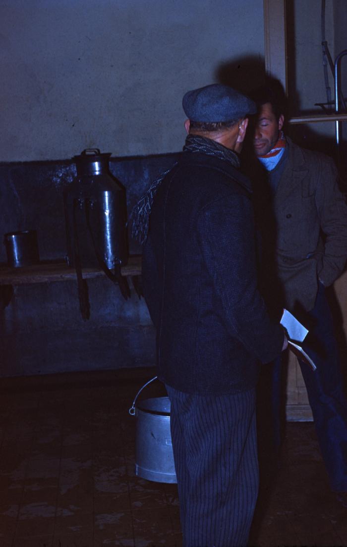 Photographie en couleur représentant le dépôt de lait à la fruitière de Viuz-en-Sallaz par les sociétaires.