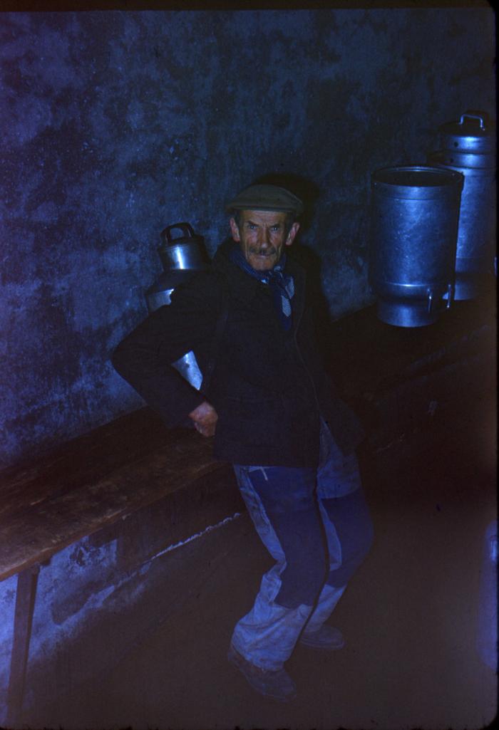 Photographie en couleur représentant le dépôt de lait à la fruitière de Viuz-en-Sallaz par les sociétaires.