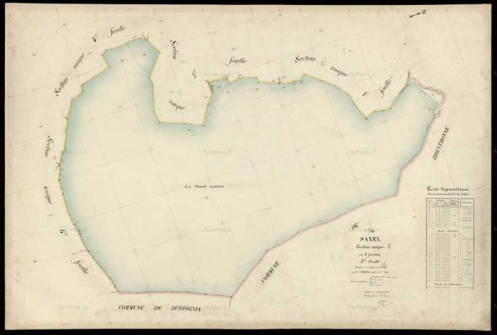 Cadastre de Saxel, issu du cadastre français de 1912 (20 novembre). Feuille 5, parcelles n°1258-1271bis, à l'échelle 1/1.000e.