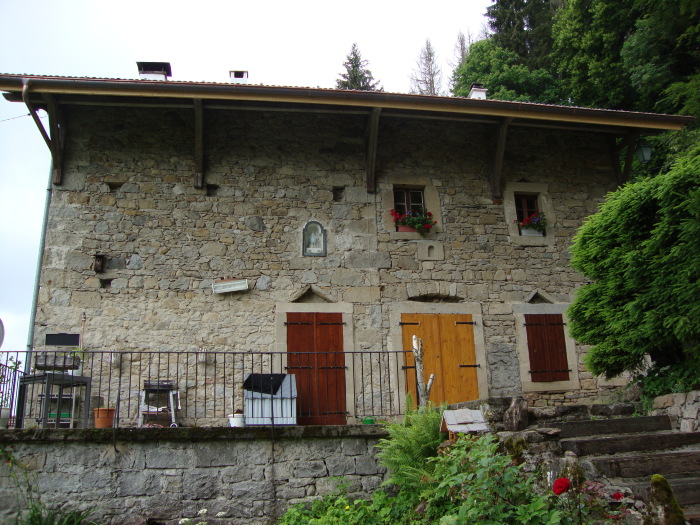 Oratoire dédié à la Vierge Marie, situé sur la façade de cette maison de pierres.