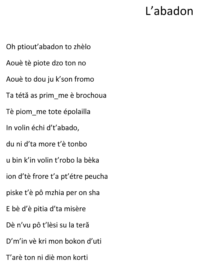 • 1- « L’abadon » (L’abandon) en francoprovençal