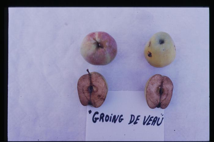 Fruit de grosse taille;épiderme vert-jaune;chair blanche, ferme, tendre, justeuse;pédoncule moyen